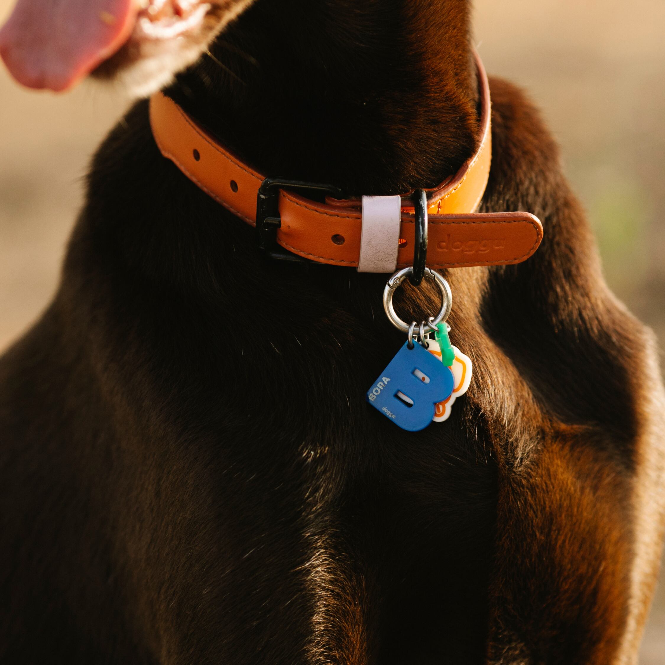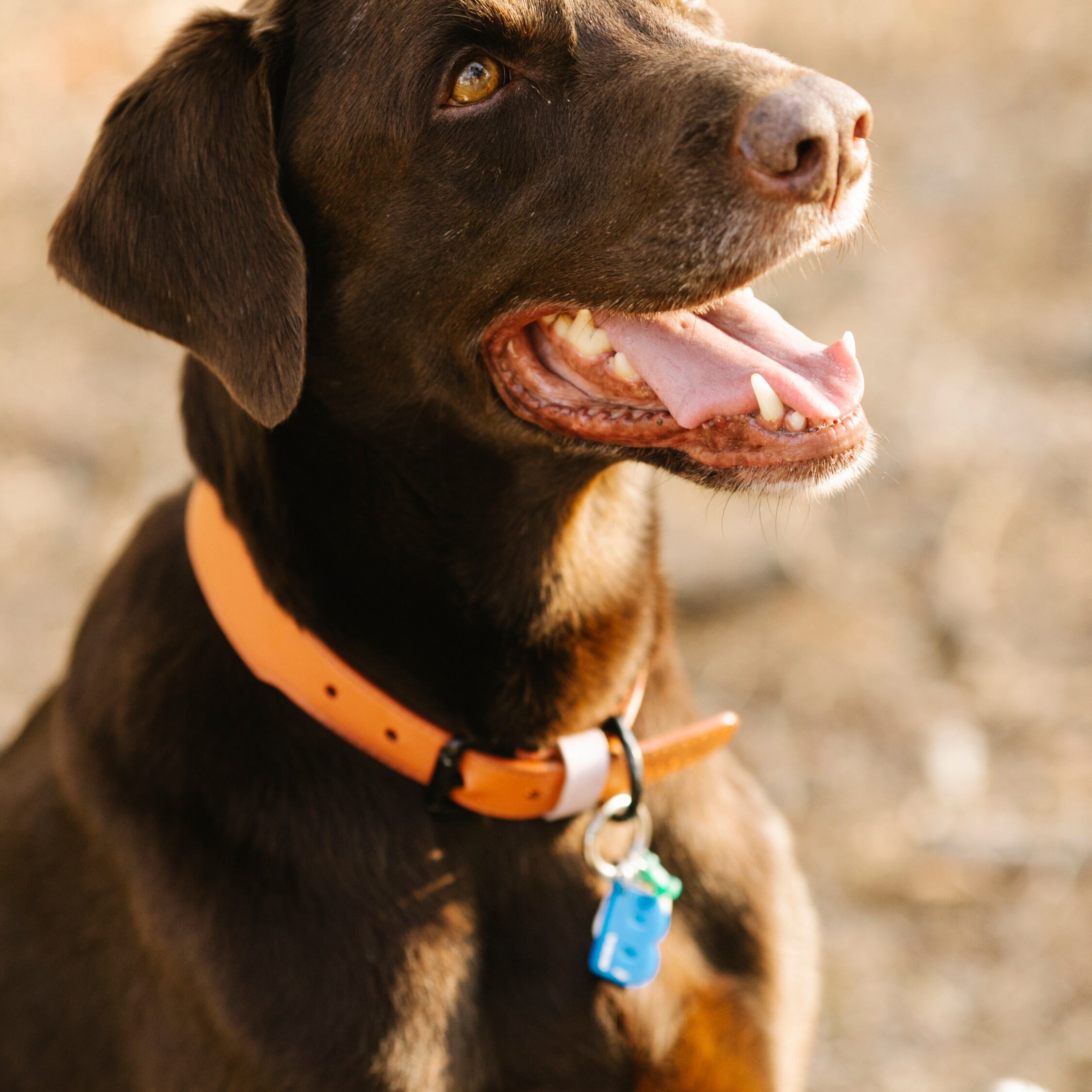 オレンジの首輪です。 革とワンポイントが可愛いです。